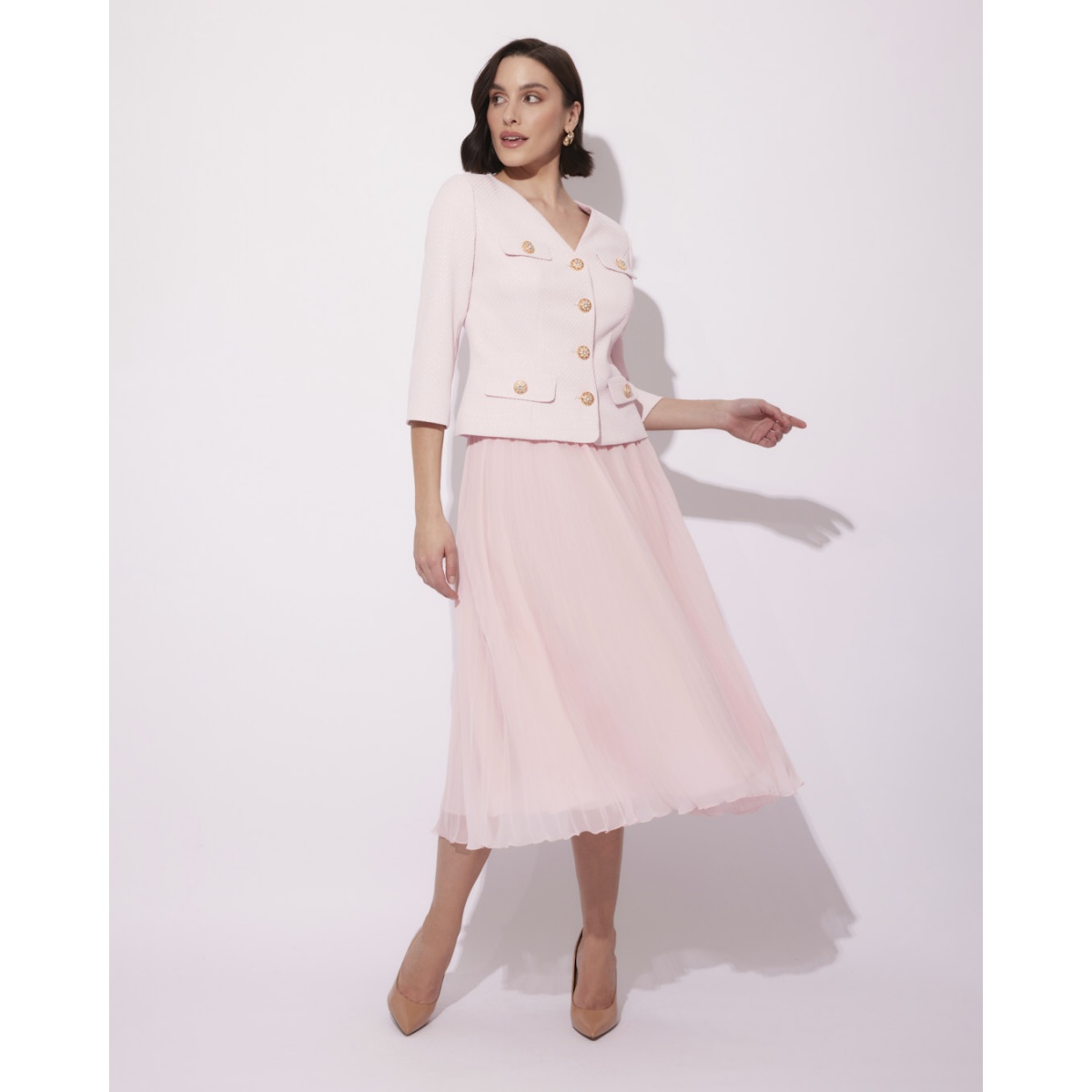 Elegantní komplet s plisovanou midi sukní. Vypasované sako s ozdobnými zlatými knoflíky.