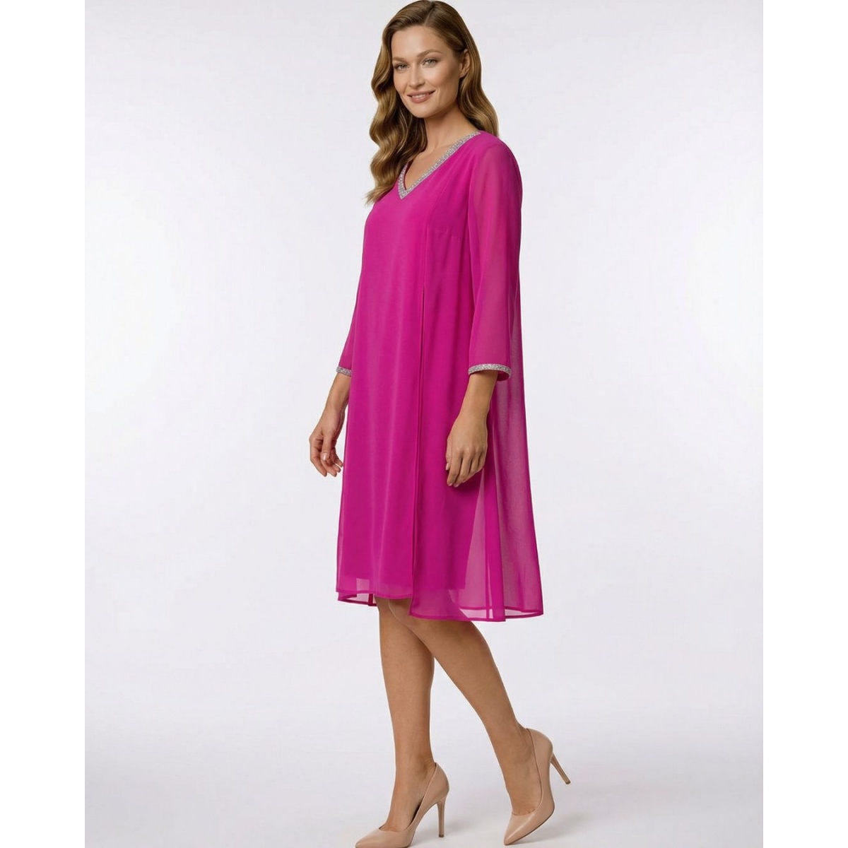 Elegantes Vision Kleid in einer schönen Amaranth Farbe. Oberteil aus Chiffon, verziert mit Zirkonia-Besatz. Kleid auf elastischem Futter.