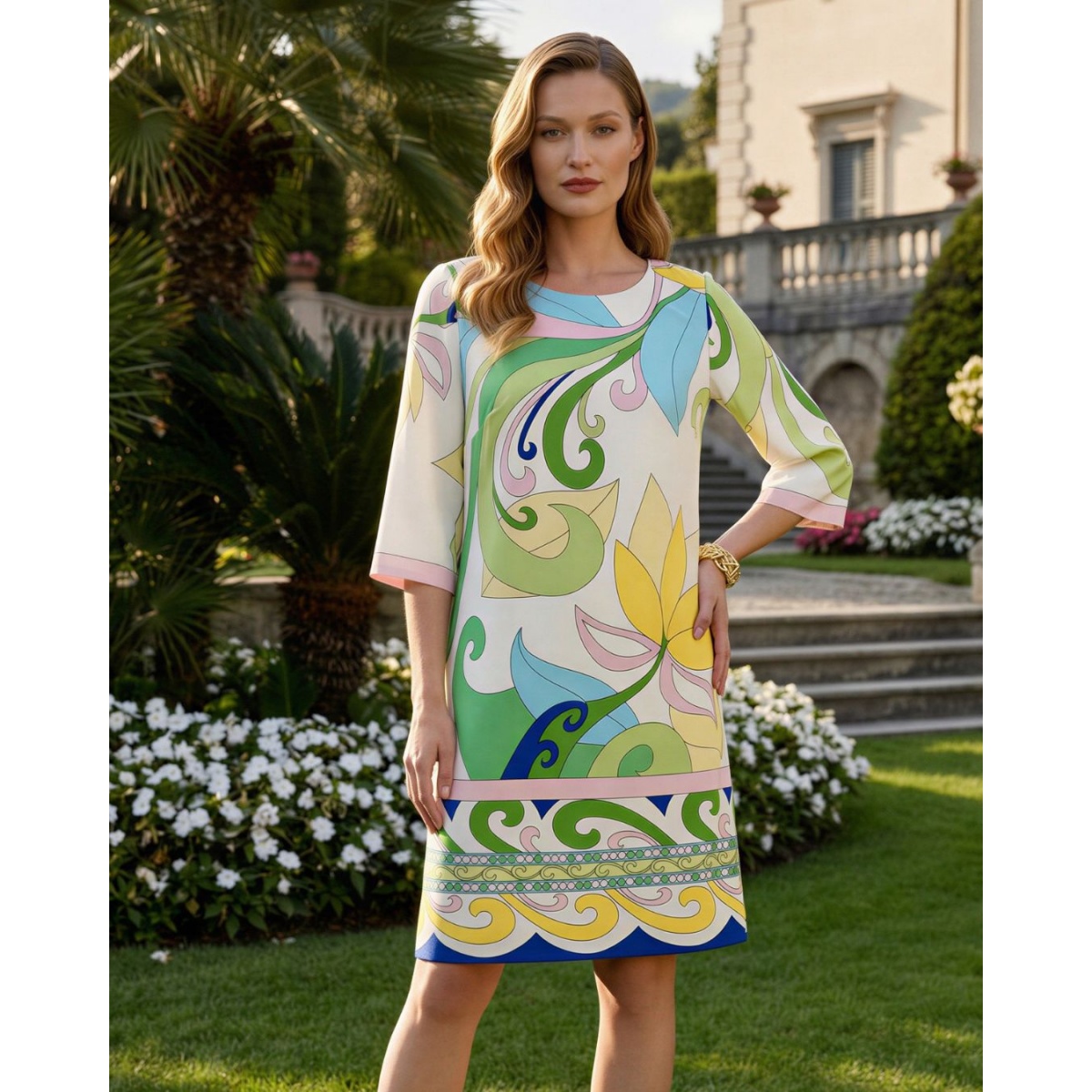 Dieses Kleid ist eine ideale Wahl für Frühlings- und Sommertage, perfekt für den Alltag, aber auch für Treffen mit Freunden oder Familienfeiern. Seine Leichtigkeit und die leuchtenden Farben verleihen jedem Styling Spaß und femininen Charme.