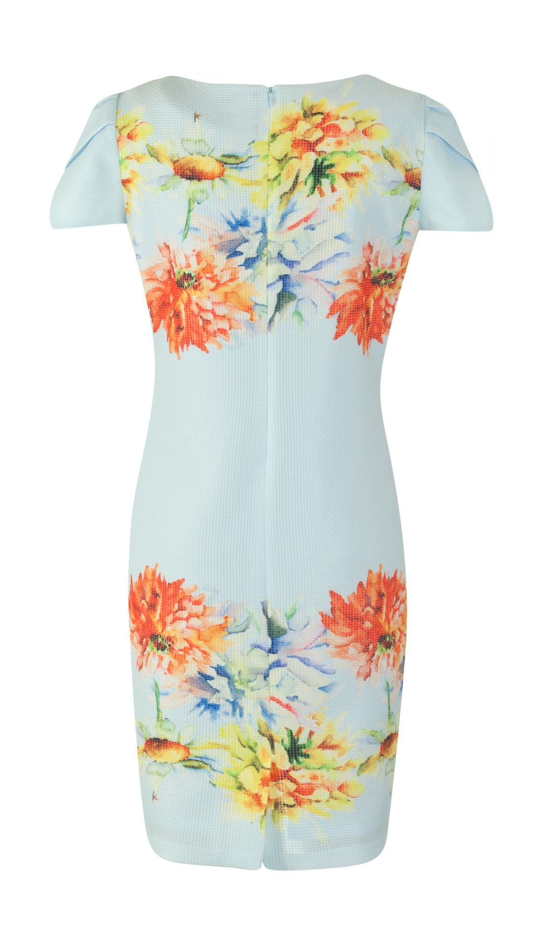 which slims the neck in a clever way. The color of the dress is exclusively associated with a cloudless summer sky,