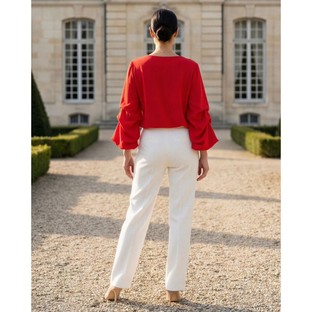 Elegant women's blouse with a timeless cut, designed for special occasions. The subtle V neckline beautifully elongates the neck and slims the silhouette, while maintaining class and moderation.