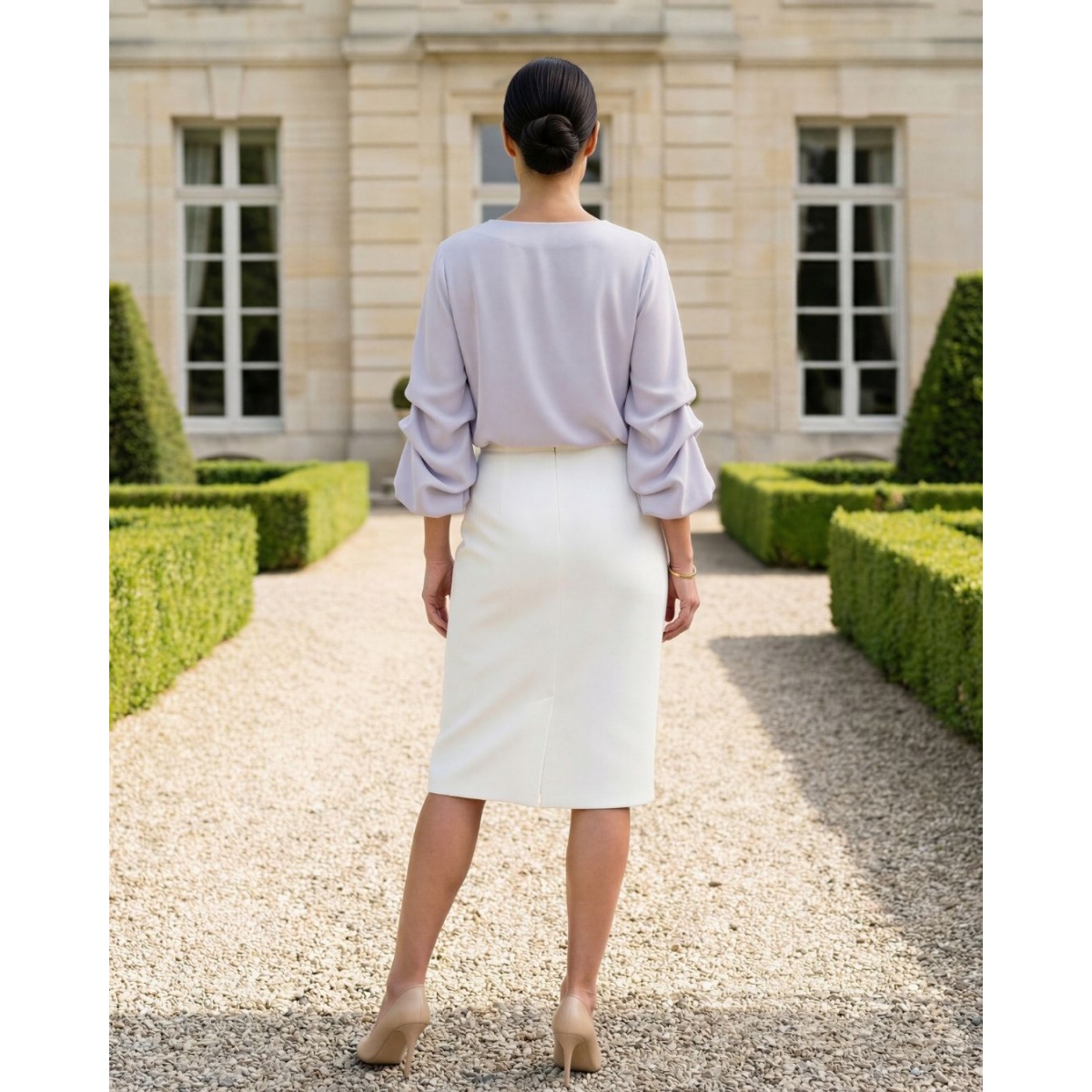 Modelul se distinge prin mâneci 3/4 izbitoare, cu o încrețire delicată, care conferă bluzei un caracter unic și o formă elegantă. Croiala mai lejeră din partea de sus oferă confort și libertate de mișcare, făcând bluza perfectă pentru petrecerile care durează ore întregi.