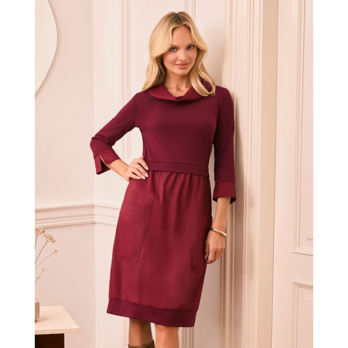 ✔ Stil creion cu partea de sus potrivită și partea de jos un pic mai liberă, care se așază moale pe siluetă ✔ Tăietura în talie, modelând delicat figura ✔ Combinarea a două țesături - partea de sus moale, elastică și tafta plăcută la atingere într-o nuanță similară în partea de jos ✔ Mânecă 3/4, elegantă și foarte practică ✔ Guler original căzut, care conferă rochiei un caracter unic ✔ Lungime până la genunchi, ideală pentru ocazii formale și de vizită ✔ Culoare bordo, profundă și extrem de nobilă ✔ Lipsa de închidere - model de pus pe cap, confortabil de purtat ✔ Buzunare mari aplicate în partea de jos, combinând funcționalitatea cu stilul modern ✔ Finisaje din tafta - guler și manșete, în concordanță cu partea de jos a rochiei